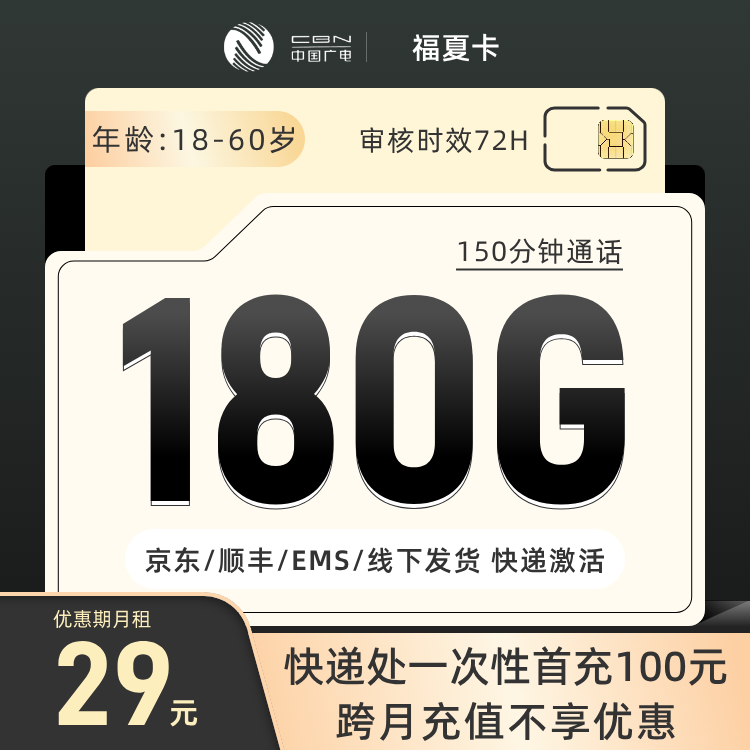 激活当月快递处一次性首充100元享优惠(只发宁夏)需接听外呼电话,下单审核72H通过后发货