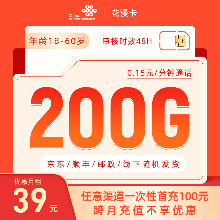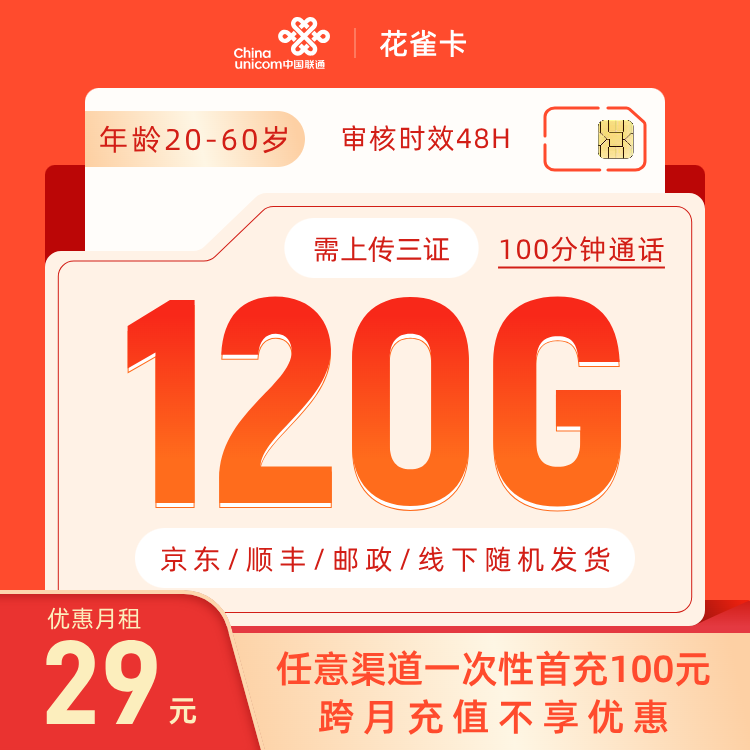 激活当月专属渠道首充100元享优惠(只发四川)下单上传3证,48H内审核照片,审核通过后48H发货