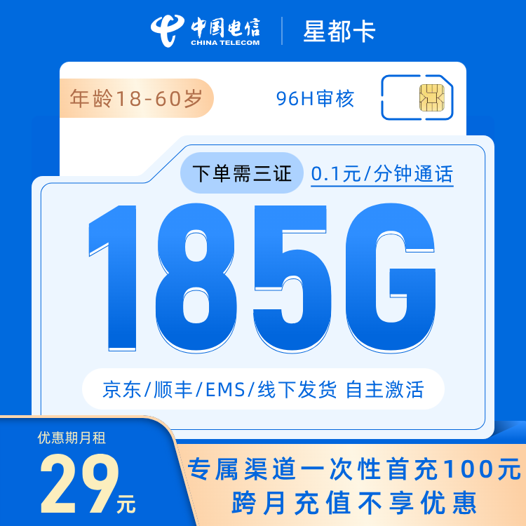 任意渠道一次性首充100元享优惠,下单需要上传三证,签收之日起3日内未开通激活,号卡会失效且无法正常使用。